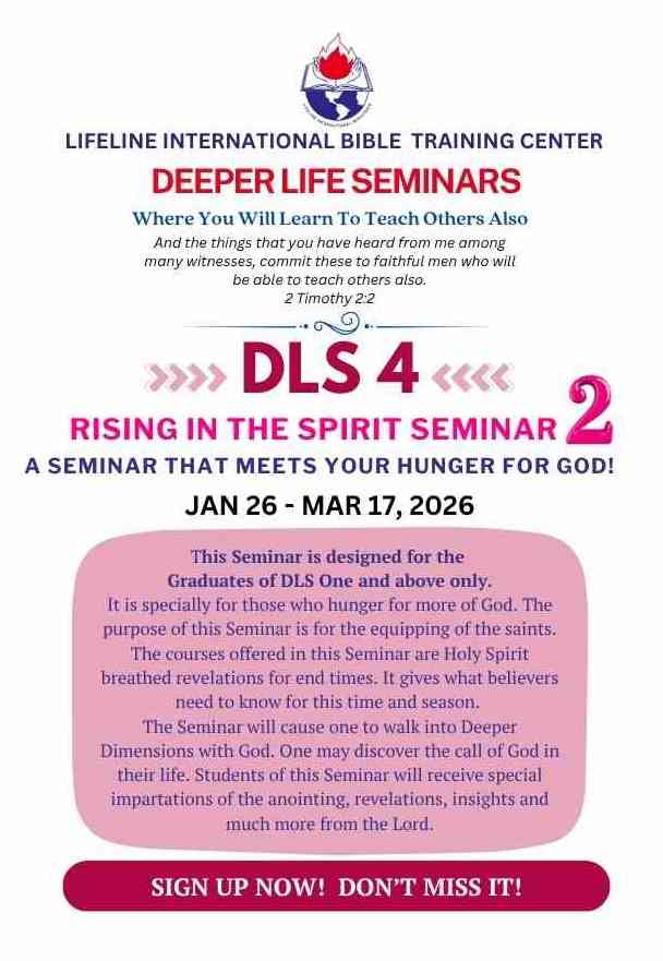 Deeper Life Seminars are short term courses conducted by Lifeline International Bible Training Center. This center formerly known as Lifeline International School of Ministry was founded by Dr. Vernon L. Falls in 1980, is the training arm of Lifeline International Ministries. Since then, thousands of students around the world have graduated from these seminars.